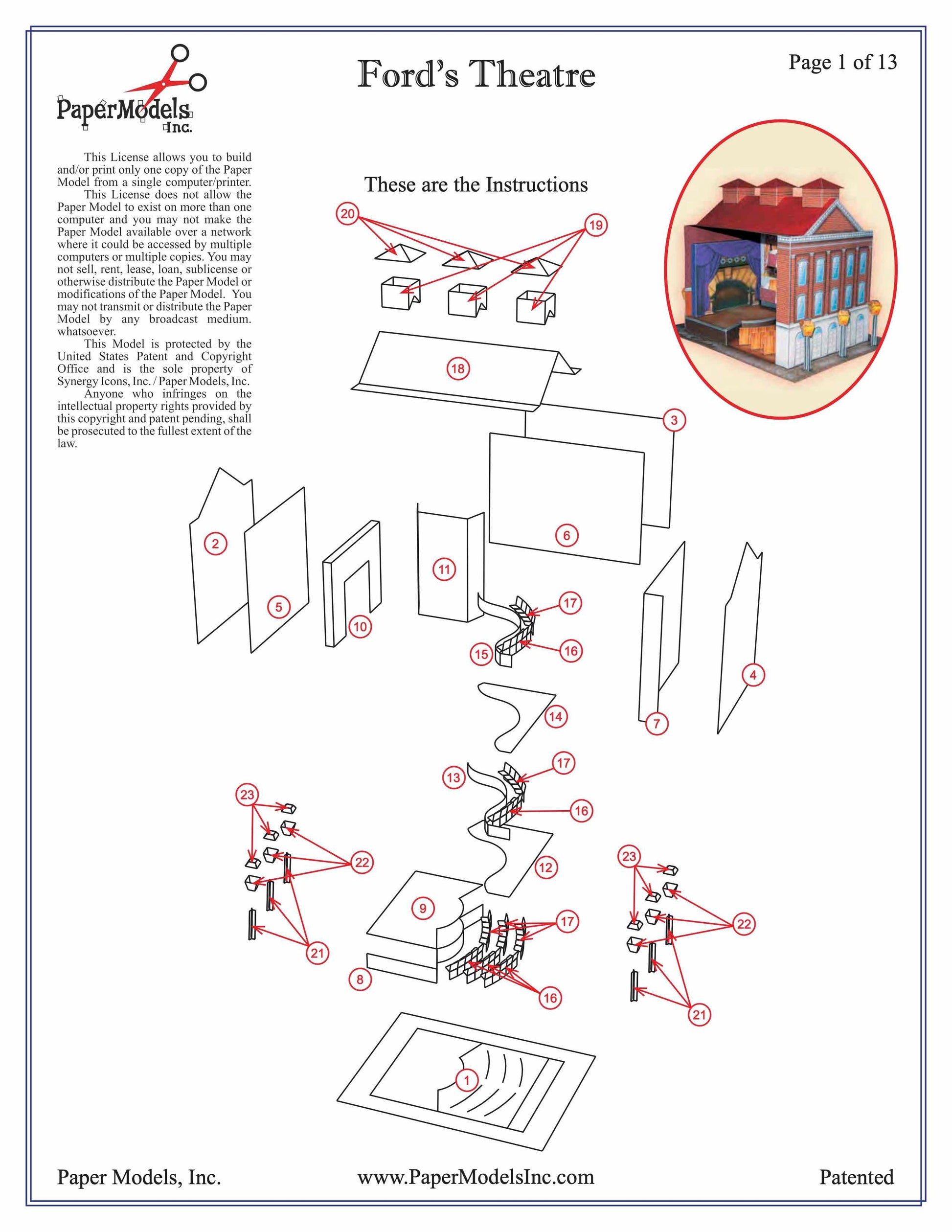 Ford's Theatre - Washington, D.C. - Assassination of President Lincoln - Paper Model